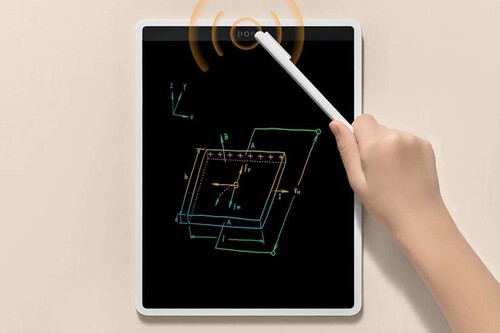 Llamada 'Xiaomi LCD Writing Tablet 13,5" Color Edition', como su nombre indica la pizarra es capaz de mostrar múltiples colores y tiene una pantalla LCD de 13,5 pulgadas. ¿Cómo funciona su tecnología? La clave está en el uso de un panel de cristal líquido de color hecho a medida, que permite la escritura sensible a la presión y esta cambia a medida que se aplica la fuerza: cuanto más fuerte se aprieta el lápiz contra la pantalla, más gruesos son los trazos.