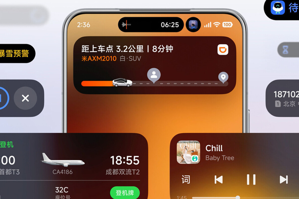 La 'Super Island' de Xiaomi es un módulo dinámico con forma de píldora alojado en la parte superior de la pantalla. Este módulo puede albergar hasta tres widgets de aplicaciones en vivo, como música, alarmas, reuniones, notificaciones de servicios, llamadas y mucho más. De hecho, Xiaomi apunta a que la super isla es compatible con más de 70 servicios integrados en HyperOS 3.
