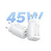 Otra de sus grandes bazas es su configuración de doble puerto USB-C, que lo hace bastante más versátil que otros cargadores compactos. Cuando utilizamos un único puerto, el adaptador puede entregar toda su potencia de 45W, mientras que si conectamos dos dispositivos al mismo tiempo el sistema reparte la energía de forma inteligente en 25W y 20W, permitiendo cargar varios gadgets a la vez sin necesidad de llevar más accesorios encima.